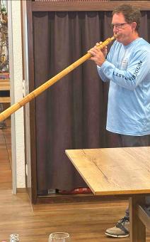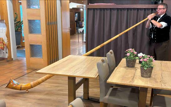 Entertainment for our second night in Brienz was provided by Adolf who played several types of Alphorns.  He then invited those in our group to play.